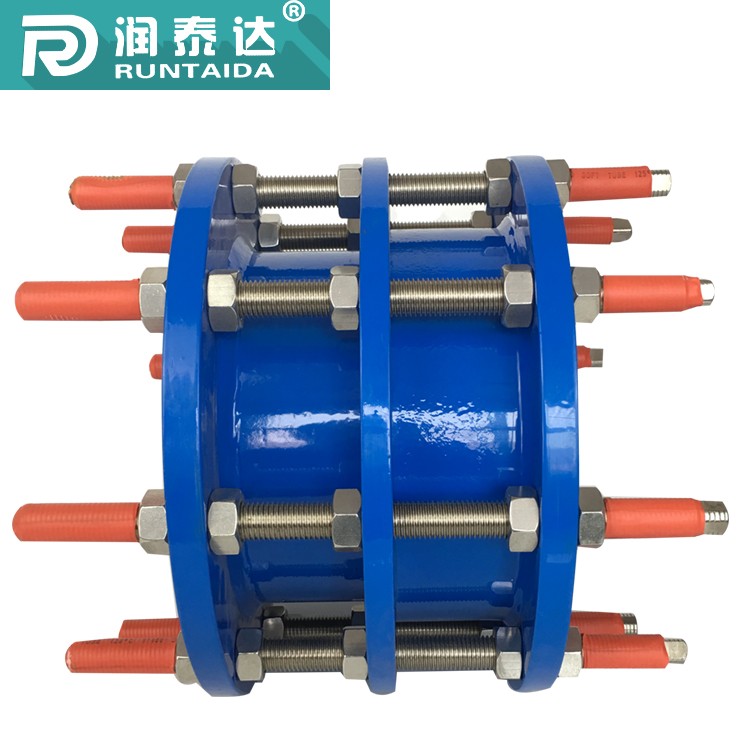 双法兰传力接头是由本体,密封圈,压盖,伸缩短管等主要部件组成该产品适用于两边均与法兰连接的管道中安装时调节产品两端与法兰的安装长度,对角均匀拧紧压盖螺栓使用其成为一个整体并有一定的位移量方便安装维修时根据现场时根据现场尺寸进行调整,在工作时可以反轴向推力传递至整个管道