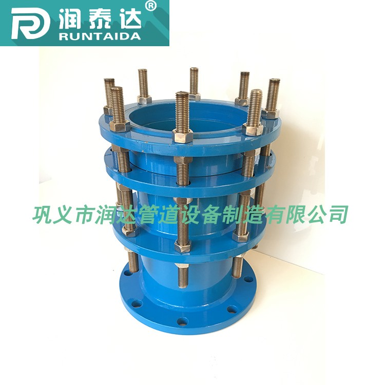 松套传力接头金属和密封圈严格按使用性能及用户要求选用。材质外部涂装高强度防腐漆料,各部连接螺栓为高强度碳钢或不锈钢制作。因为本体与伸缩管之间有间隙,使它具有轴向和径向位移。在管道中能有效的补偿和缓解管道和盲板推力,又能便于水泵,阀门的安装维修更换,实为管道安装运行业中理想的配套产品。
